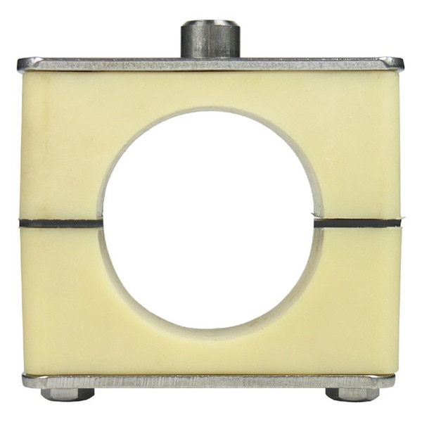 The injection-molded clamp halves also have outstanding physical properties. They offer excellent dielectrical and acoustical insulating properties. Molded from either Santoprene (an FDA regulated thermoplastic rubber) or Polypropylene, these clamp halves offer a wide range of thermal properties (-22ºF to 212ºF for PP; -40ºF to 302ºF for SP). Santoprene has excellent resistance to a broad range of foods such as milk, beer, wine, vinegar, and beverage syrups. The Santoprene clamp halves also offer resistance to salt water, oils as well as most acids, alkalis and other chemical solutions.